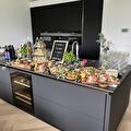 Om de drukte niet te centreren in de keuken, bedachten we om de grazing table te verdelen over twee verschillende plekken: op het grote kookeiland in de keuken en op het aanrecht van de buitenkeuken.