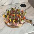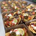 Samen kwamen we tot het idee om 10 verschillende hapjes te serveren. Koude hapjes, waaronder nacho's, rivierkreeftjes en borrelspiezen. En warme hapjes, zoals een klein broodje hamburger en heerlijke runderbitterballen van Kroketterij 'De Bourgondiër'. En natuurlijk werd alles geserveerd op een manier die je van Op een plankje mag verwachten.